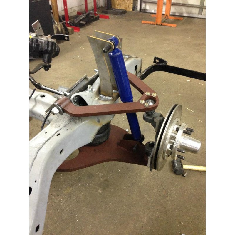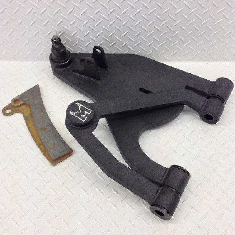 These are the custom to your spec, Michigan Metal Works Conversion arms for the 47-59 trucks running an S-10 front suspension.  People have been swapping 47-53 truck bodies onto S-10 frames for quite time time now, and up until now they have been forced to run 2.5" to 3" wheels spacers to make the track width wide enough to fill the fenders, and clear the motor properly, but now you finally have a better option, and can throw those stupid wheel spacers in the garbage.