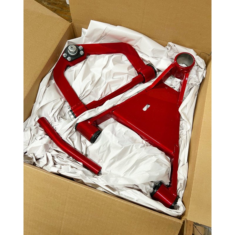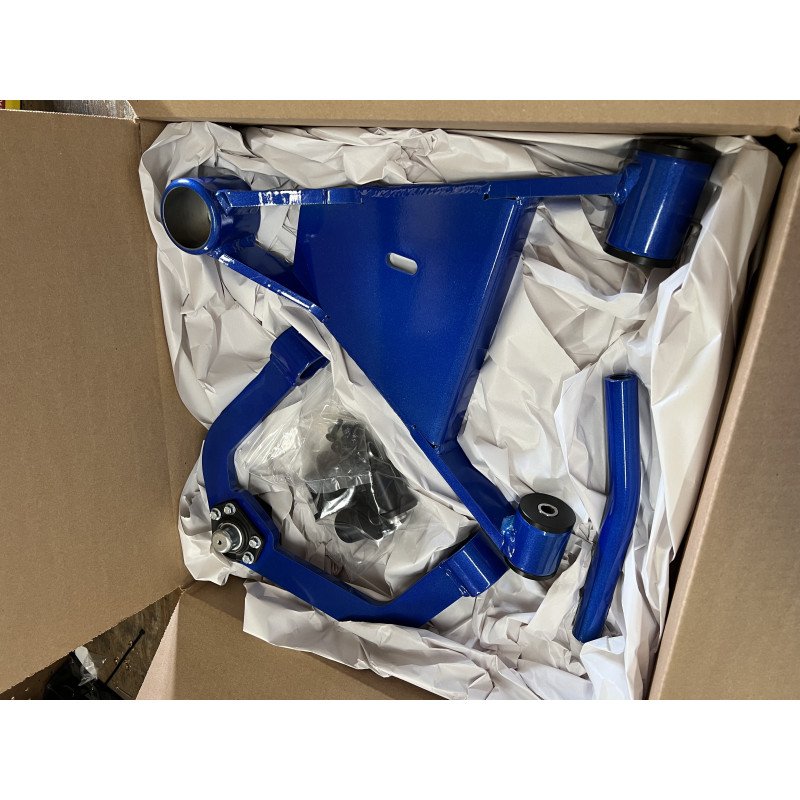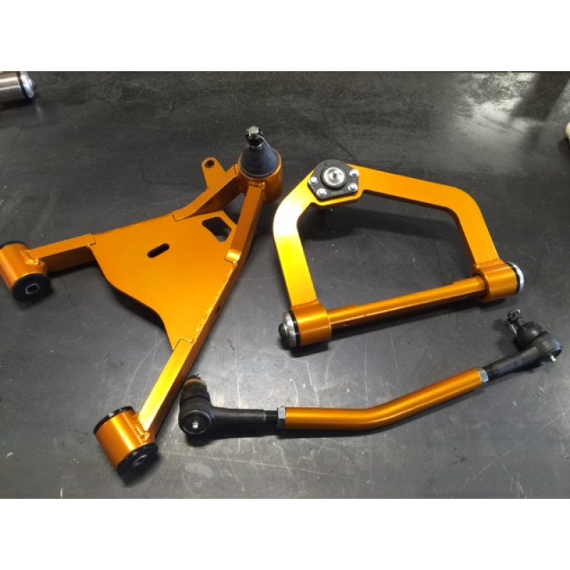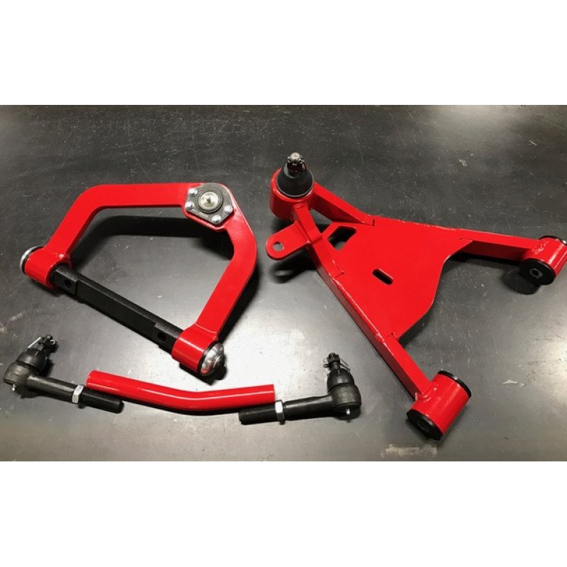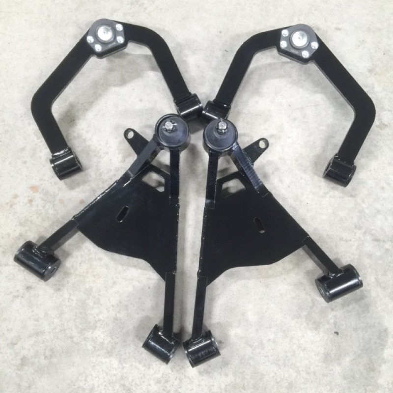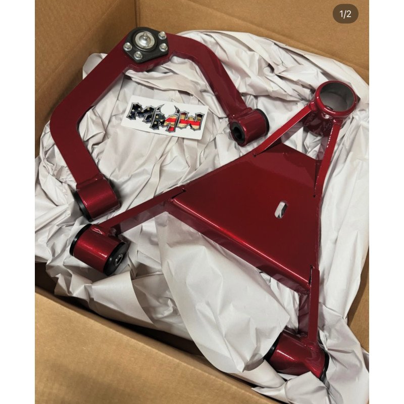 These are the MMW, S-Series budget arm set. This kit includes everything you need to lay frame on the front of your truck out on anything from a 18-22" wheel, with up to a 27" OD tire, with drop spindles.