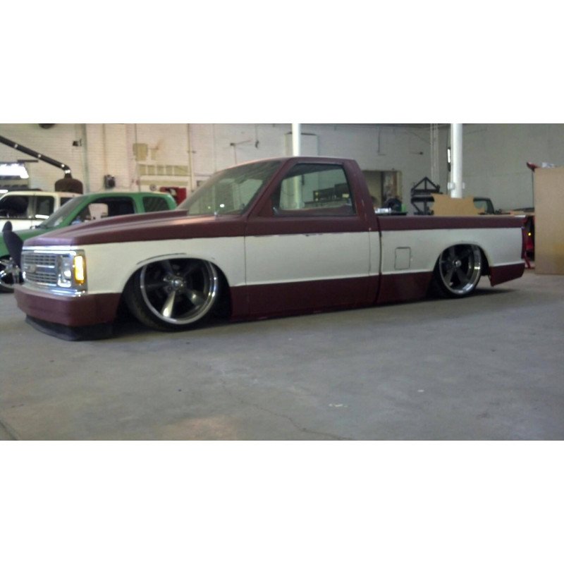 Add notchless tie rods to this kit, and you have a direct bolt in front setup that can lay the front of your S-Series truck with NO welding at all.